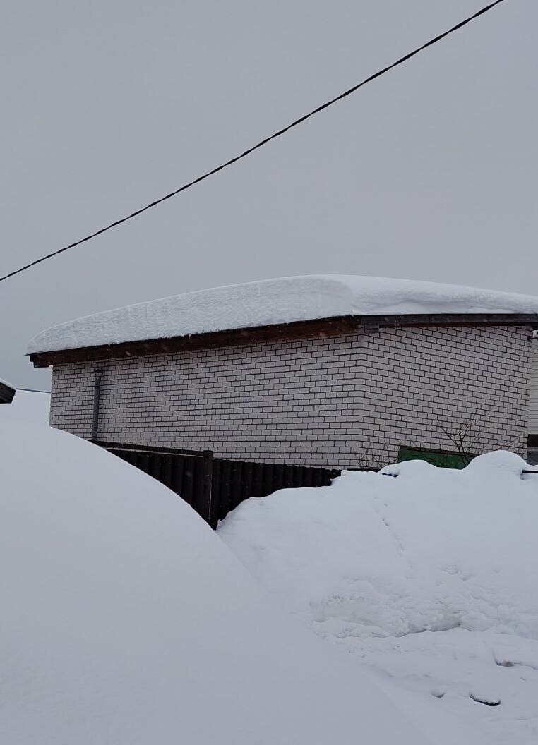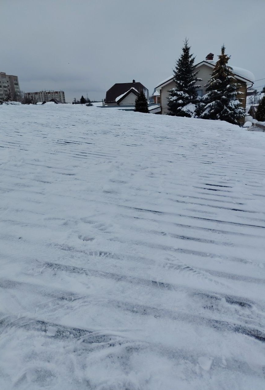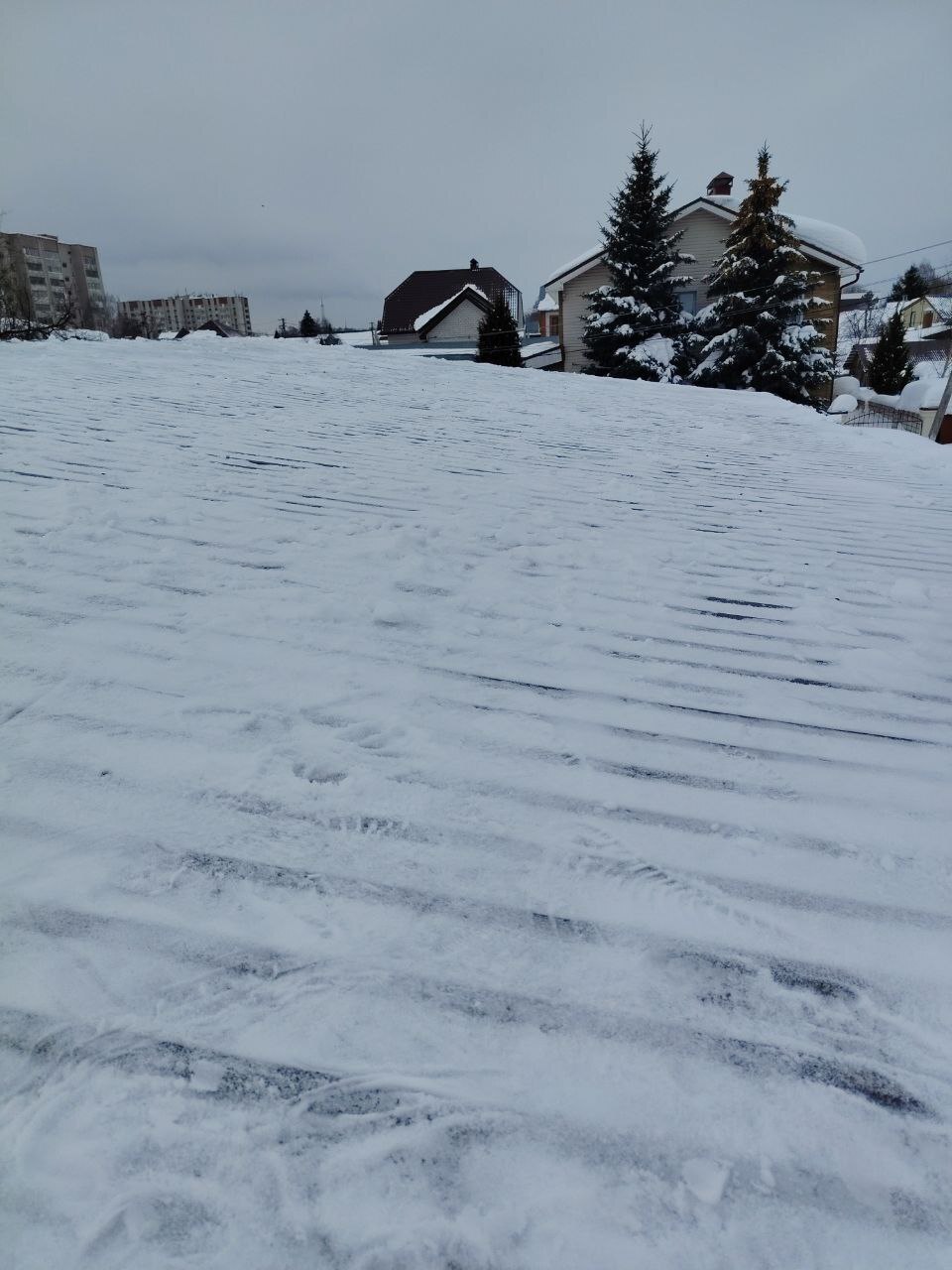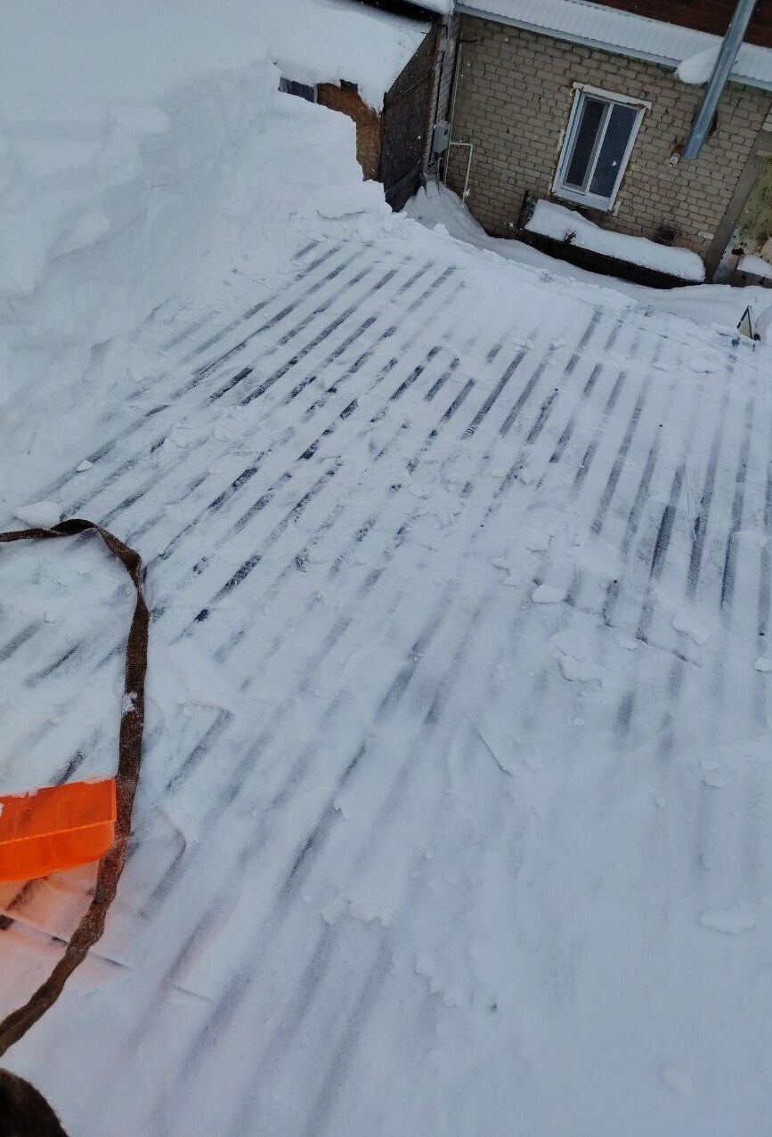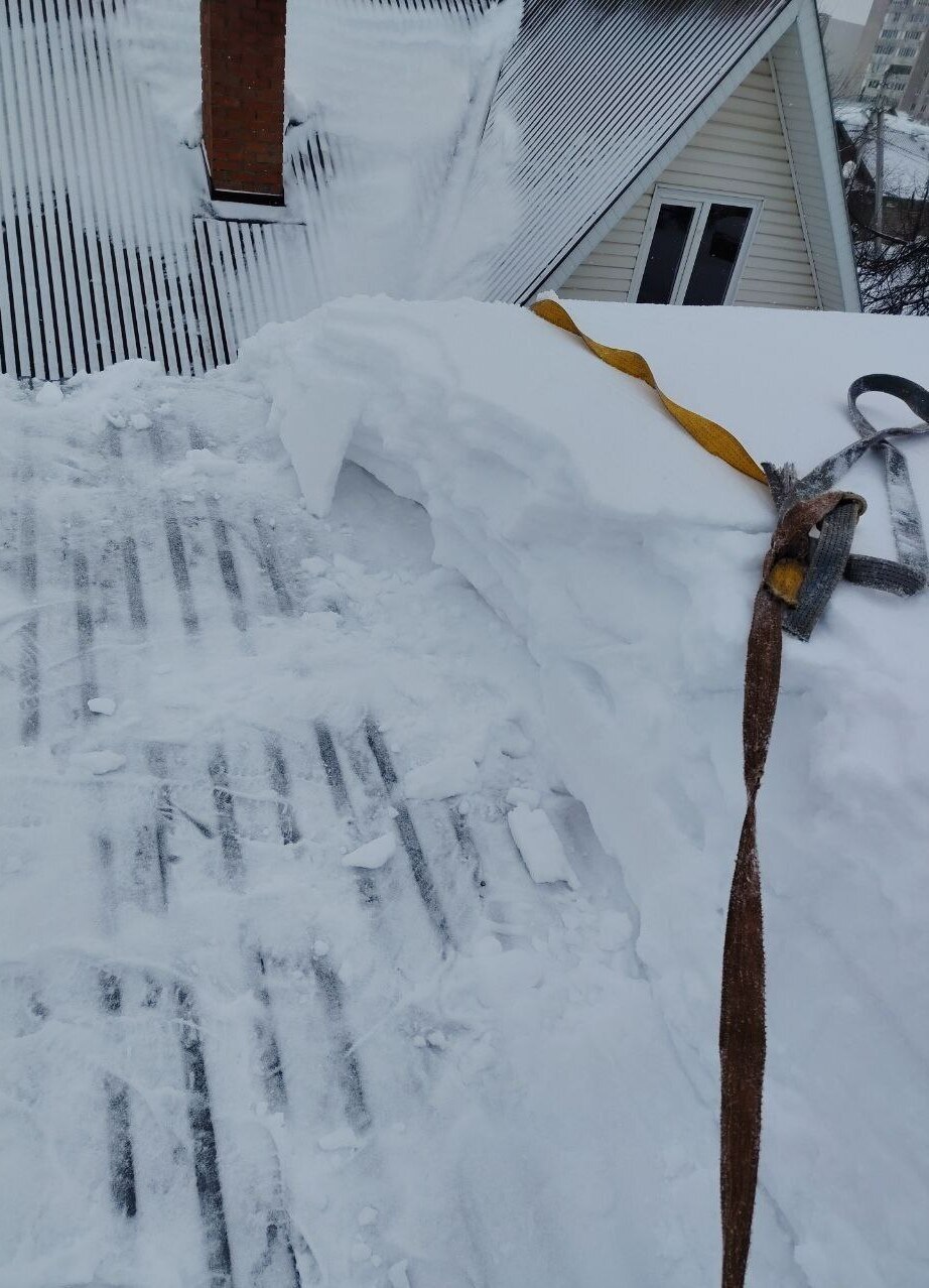 Уборка снега с крыши дома в жилом массиве Новое Аракчино