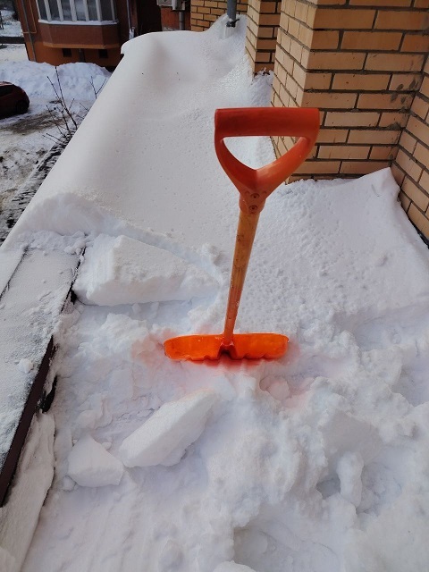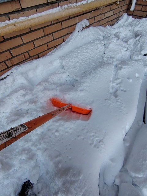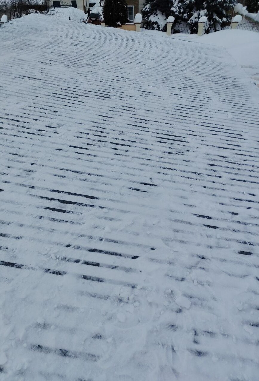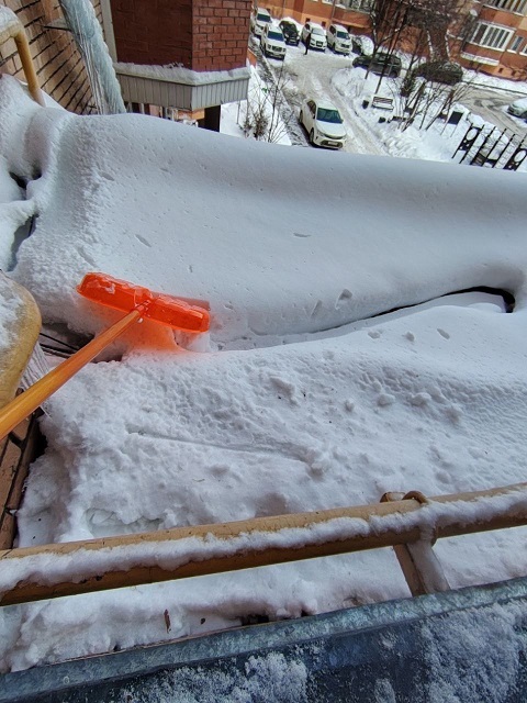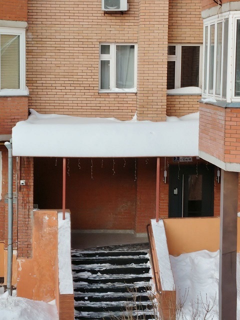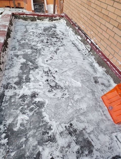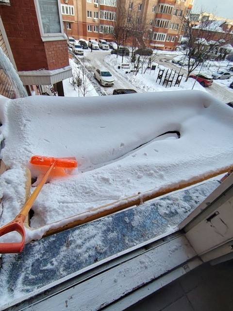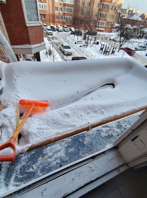 Проведены работы по чистке снега с козырьков четырёх подъездов и обработке поверхности кровли солью от наледи.
